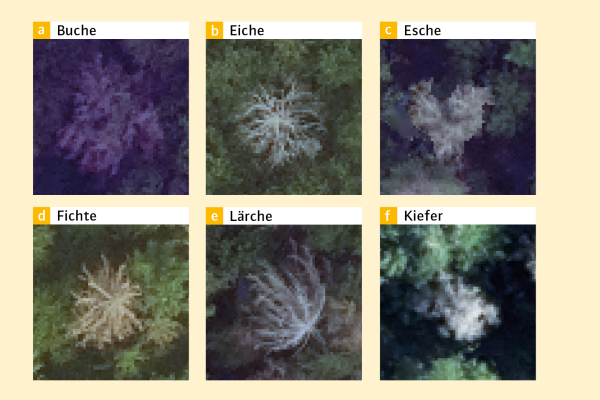 Die vergangenen Trockenjahre haben in Nordbayern starke Schäden am Laubholz hinterlassen. Im Kurzprojekt BeechSAT (2019 bis 2020) wurde eine Machbarkeitsstudie durchgeführt, mit dem Ziel, aus unterschiedlichen Fernerkundungssensoren abgestorbene Laubholzkronen zu erfassen. Die positiven Ergebnisse bilden die Grundlage für das Folgeprojekt »ForstEO – Einsatz der Erdbeobachtung zur Erfassung von klimabedingten Schädigungen des Waldes in Deutschland«. Innerhalb des Projekts beschäftigen sich Forschende der LWF speziell mit der Verwendung von Künstlicher Intelligenz (KI).